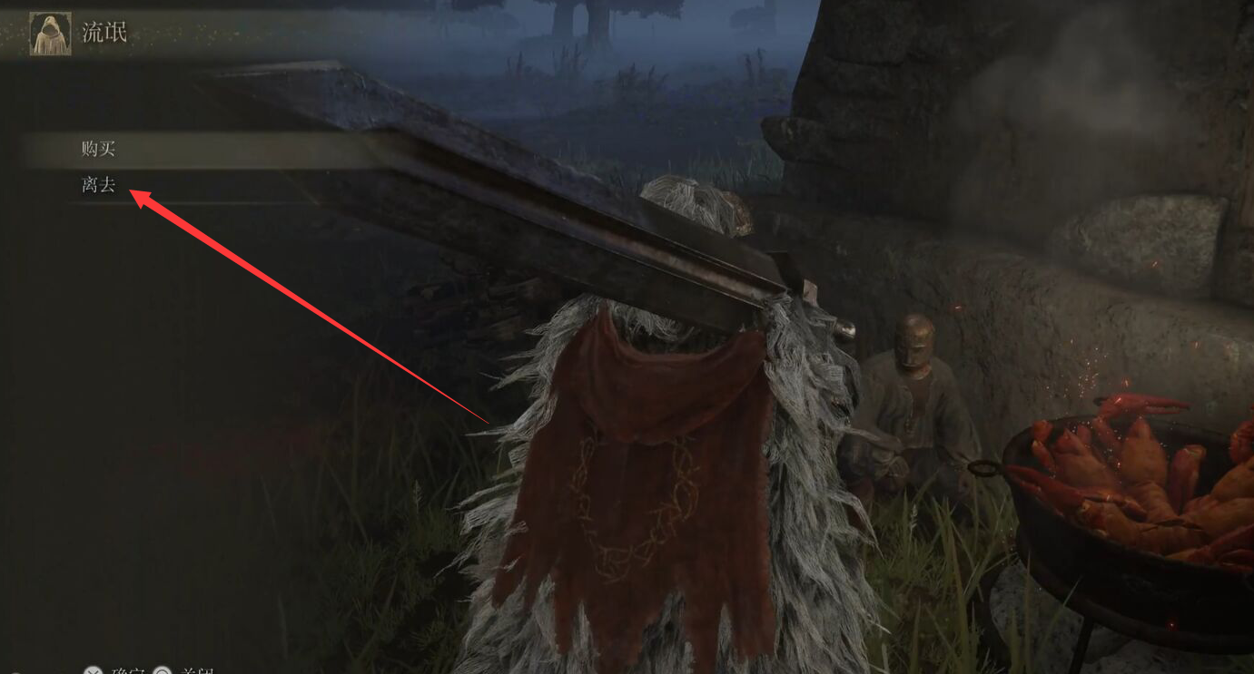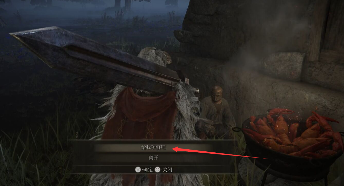 3、點擊如圖選項,注意,這個時候不要殺他,花一千盧恩跟他買項鏈。