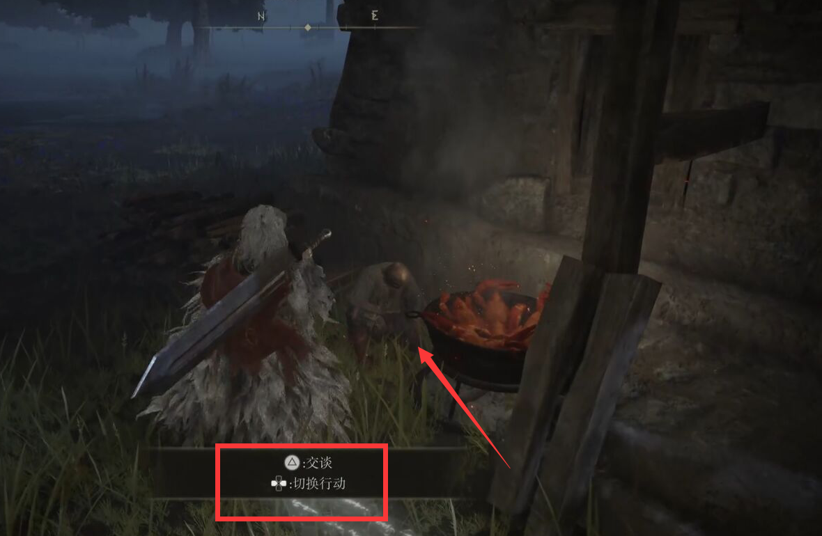 2、到達之後,就會看到一個煮著大龍蝦的NPC,點擊與他對話。