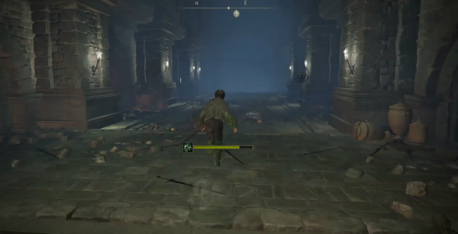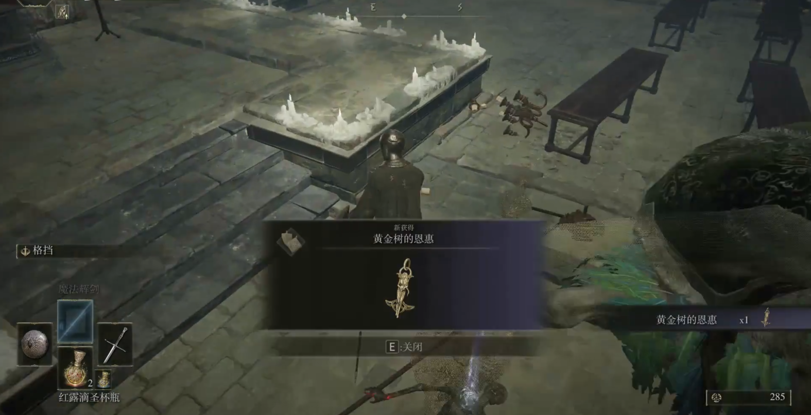 5、然後一直往前走,噴火機關旁邊有雷油脂,再往前走,過了橋就可以拿到黃金樹的恩惠。