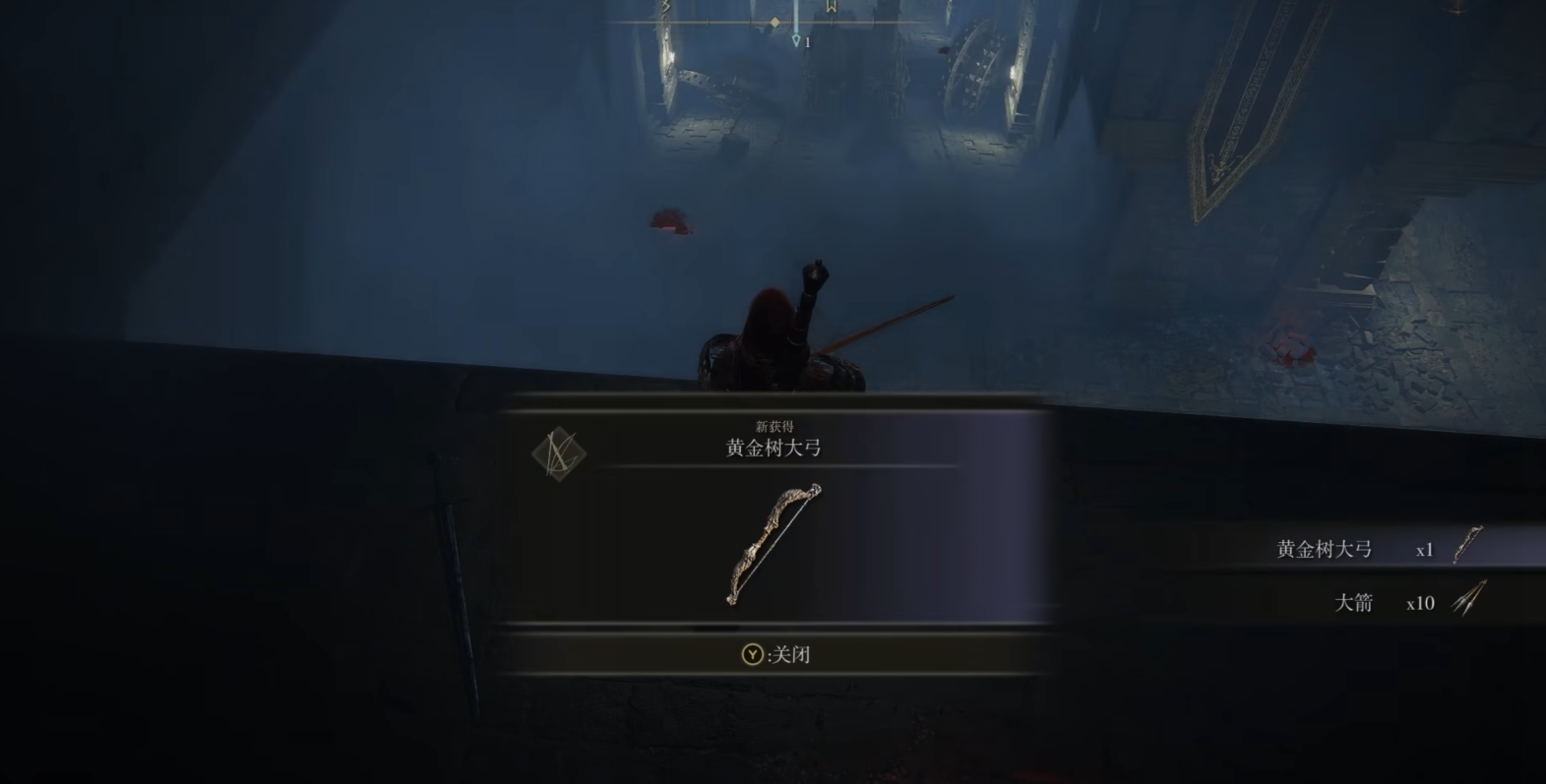 7、一直乘坐電梯上去,在第一個拐角殺死一個拿戟的小怪後,用頭頂的石頭砸壞泥頭車可以獲得黃金樹大弓。