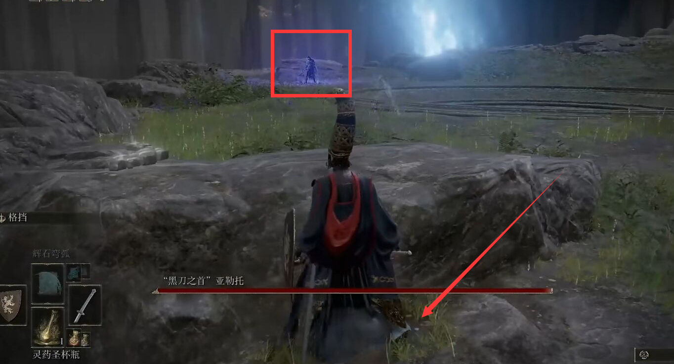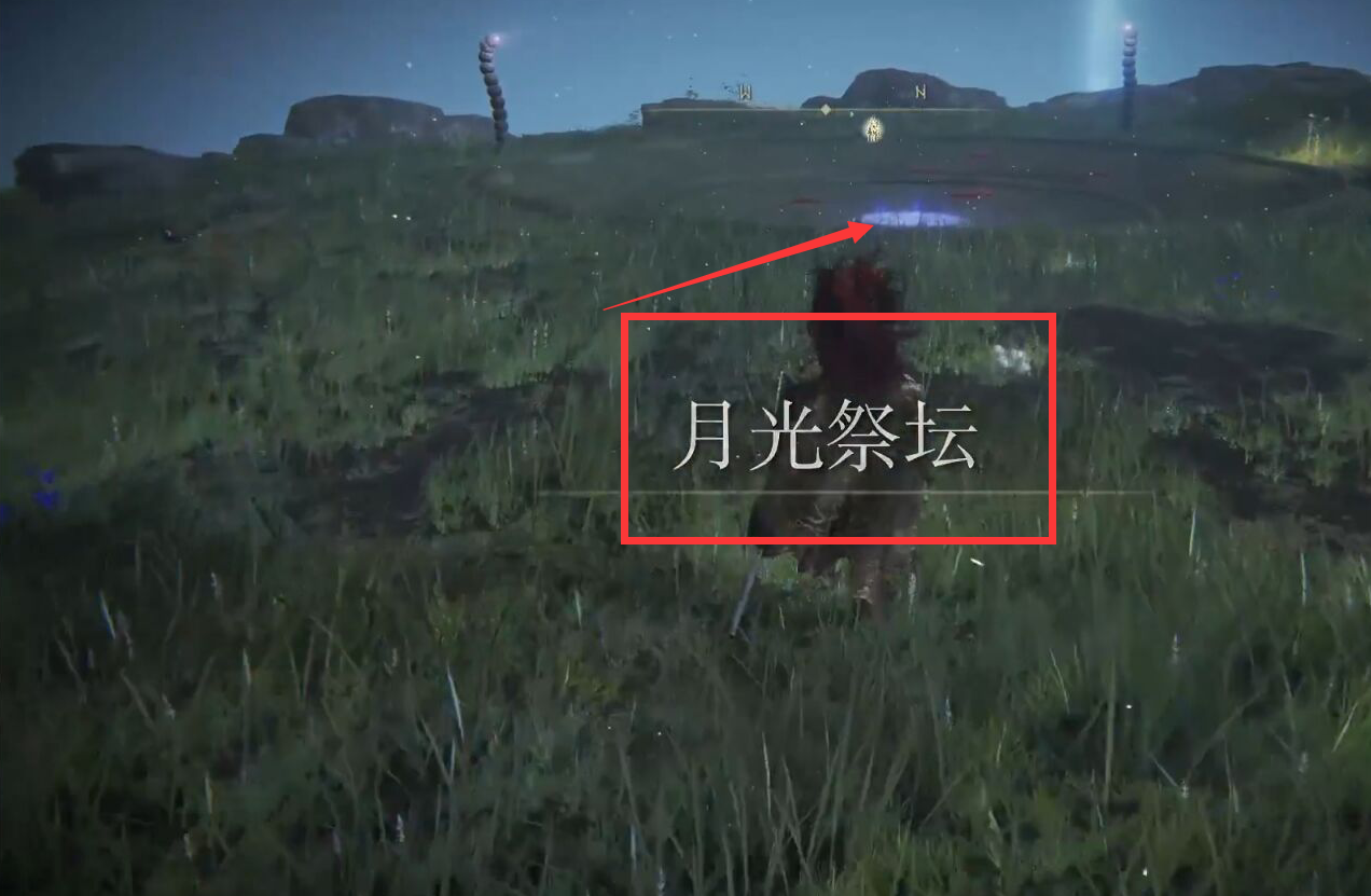 1、黑刀首領在【月光祭壇】,到達之後往前面紫色亮光的這個位置跑,如圖。