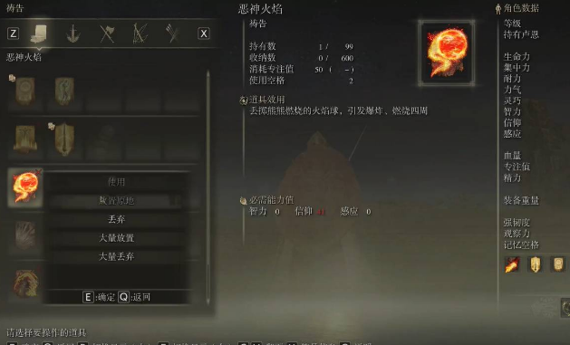 首頁 艾爾登法環 問答 艾爾登法環惡神火焰為什麼用不了? 2022-08-08 艾爾登法環使用惡神火焰需要2個記憶空格來學習,接著裝備上「指頭聖印記」,這樣就可以釋放了,需要注意的是指頭聖印記需要前往賜福點裝備。