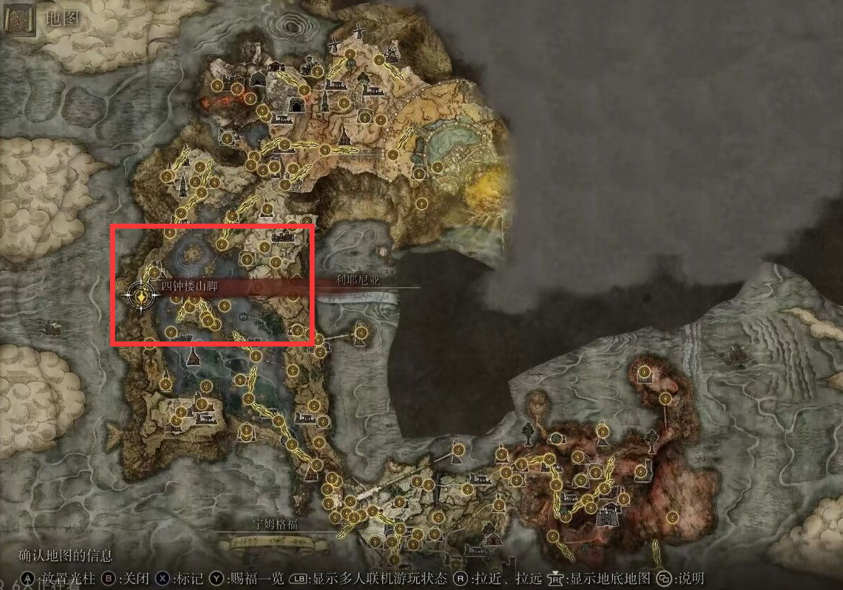 1、首先打開地圖標記【四鍾樓山腳】,前往。