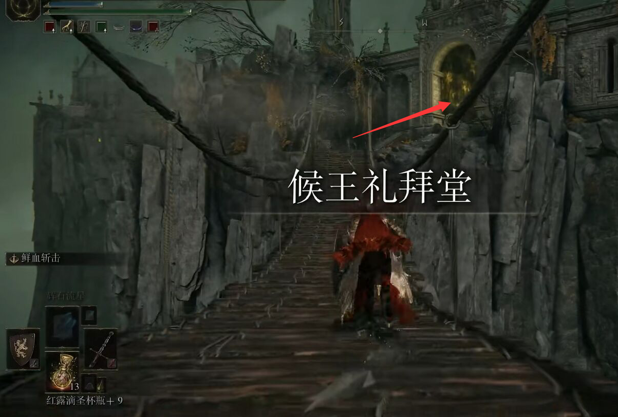 5、在賜福點的前方往下走到達這里移動到【侯王禮拜堂】,如圖: