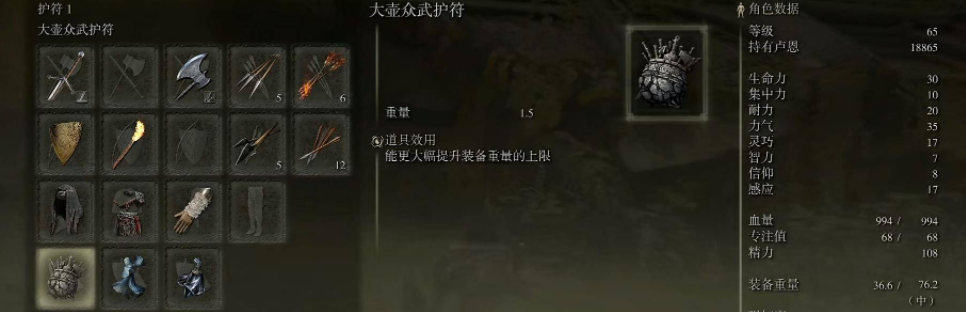 首頁 艾爾登法環 問答 艾爾登法環負重怎麼提升? 2022-08-10 提升負重有兩種方式。1、增加耐力,這是最為方便的方法,除了增強裝備負重外,還能提高最大耐力和抗性,對失血和凍傷效果有抵抗力。2、佩戴可以增加負重的護符也可以提升負重。