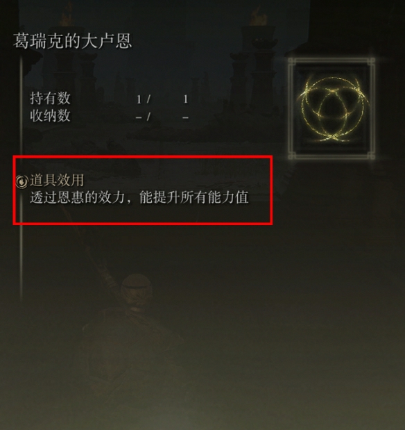 首頁 艾爾登法環 問答 艾爾登法環裝備大盧恩有什麼用? 2022-08-10 在賜福點裝備大盧恩後,使用【盧恩彎弧】即可激活大盧恩的加成效果,根據當前所裝備的大盧恩,可以激活特定的加成效果,比如增加能力值、增加HP,在BOSS戰中會很有幫助。如圖下,葛瑞克的盧恩能夠提升所有的能力值。