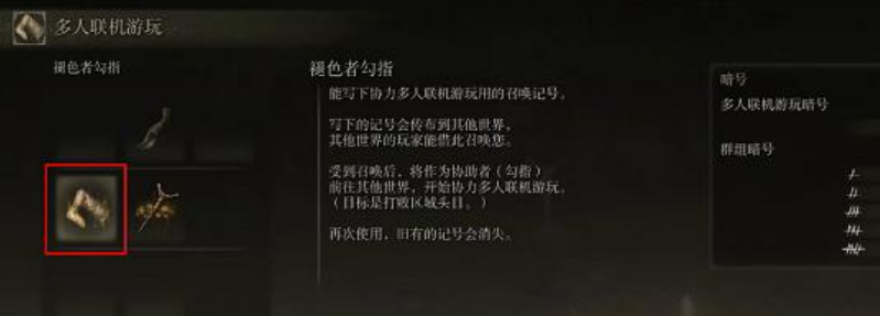 遊戲中玩家可以有兩種方式跟好友聯機,一種是召喚好友,一種是被召喚,分別需要使用不同的道具才能實現。褪色者勾指是被召喚道具,使用後玩家會前往好友世界協助對方作戰。喚勾指葯是召喚道具,使用後玩家可以召喚好友,好友接受後會傳送到玩家所在世界。