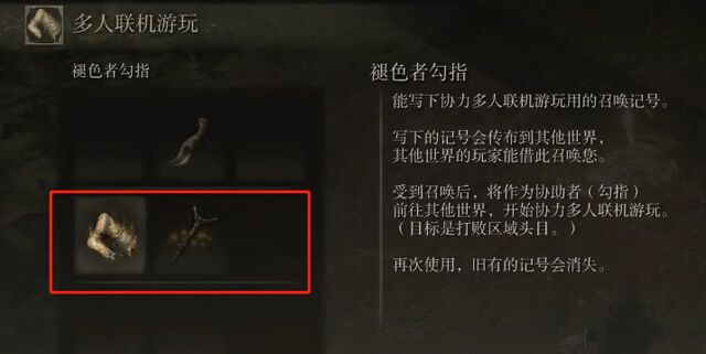 首頁 艾爾登法環 問答 艾爾登法環褪色者勾指怎麼用? 2022-08-11 艾爾登法環中褪色者勾指可以用來進行多人聯機,使用方法如下:1、進入遊戲後,點擊菜單,點擊多人聯機遊玩2、點擊使用褪色者勾指,就會自動寫下召喚印記,當其他玩家用喚勾指召喚你到他的世界時,則褪色者勾指使用成功