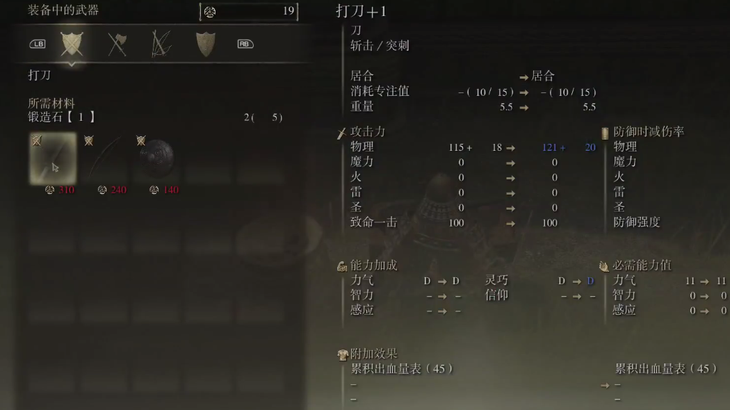 4.然後選擇要強化的武器,就可以消耗鍛造石和盧恩進行強化了