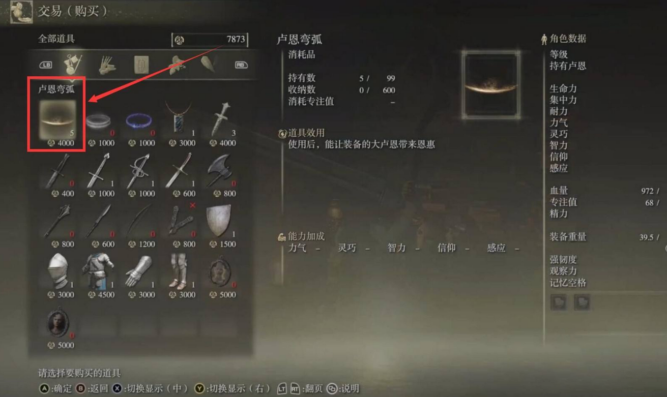 1.在賜福點裝備大盧恩後,使用【盧恩彎弧】即可激活大盧恩的加成效果。
