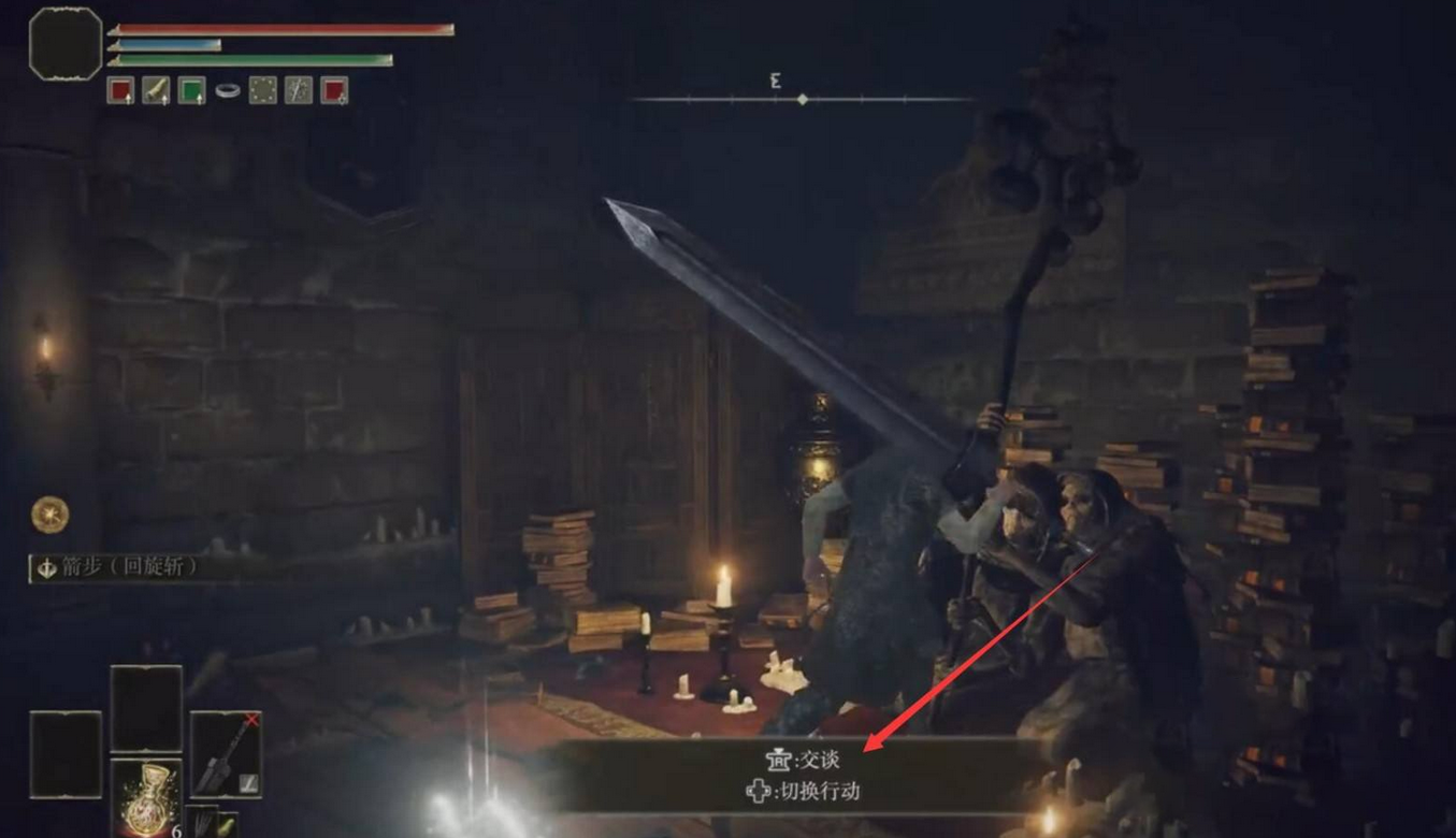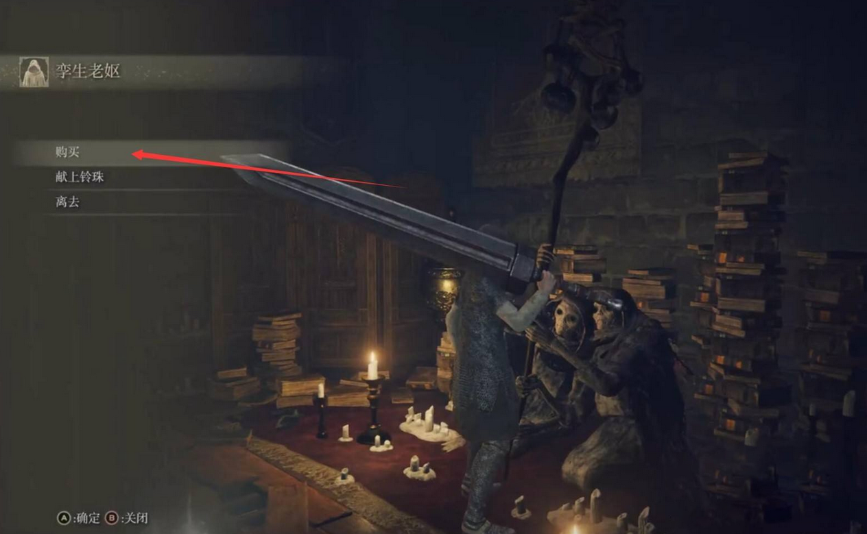 2.盧恩彎弧獲取:進入到遊戲中找到孿生老嫗商人,選擇與其交談。