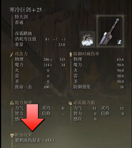 首頁 艾爾登法環 問答 艾爾登法環怎麼增加老寒腿傷害? 2022-08-11 1.首先就是在遊戲中的角色是沒有冷凍抗性的,當蒙格釋放火焰技能時可以解除凍傷效果,可以直接滅火。2.然後就是附帶寒冷巨劍 25可以將老寒腿凍傷傷害最大化,加153,如圖所示。