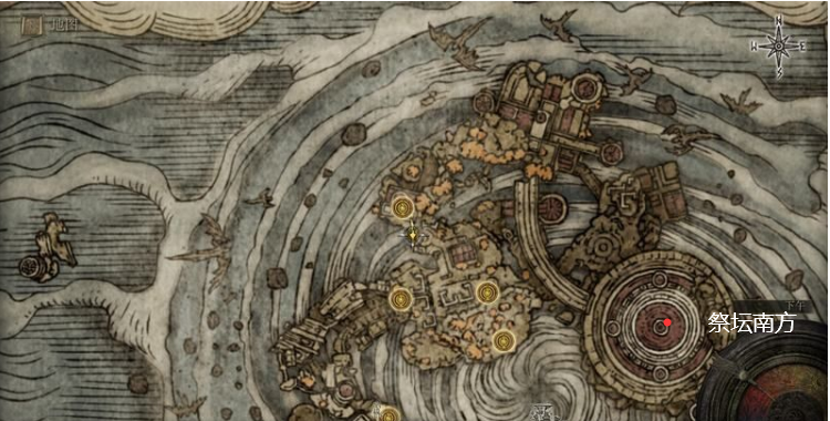 根據地圖標記點走,可以繞各種方向進去,艾爾登法環祭壇南方位置算是探索的樞紐,可以往多個方向前進,也就是地圖的右下角。