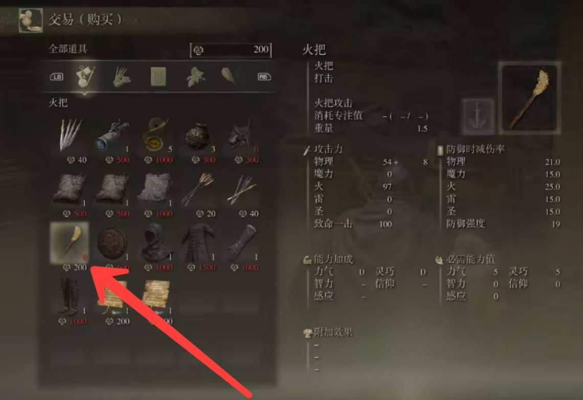 首頁 艾爾登法環 問答 老頭環火把在哪買? 2022-08-12 艾爾登法環火把的購買:1、首先來到艾雷教堂,找到附近的商人;2、然後與商人對話,點擊購買選項;3、最後在商品列表中,選擇火把進行購買即可。