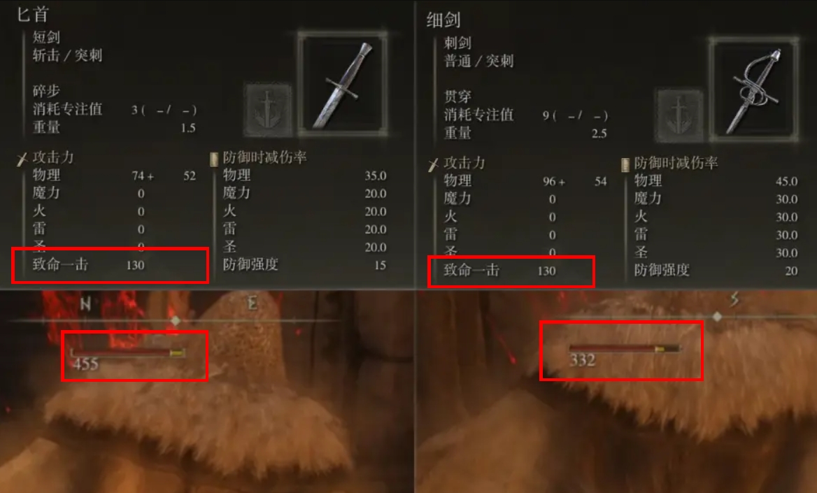 首頁 艾爾登法環 問答 艾爾登法環致命一擊倍率最高的武器是什麼? 2022-08-12 1、細劍的致命一擊倍率最高,如圖可以看到匕首和細劍都是130致命一擊加成,而匕首致命一擊倍率比細劍低,所以造成的傷害也要低一些。2、同類武器的致命一擊倍率值(彈反、背刺),基本都是一樣的。