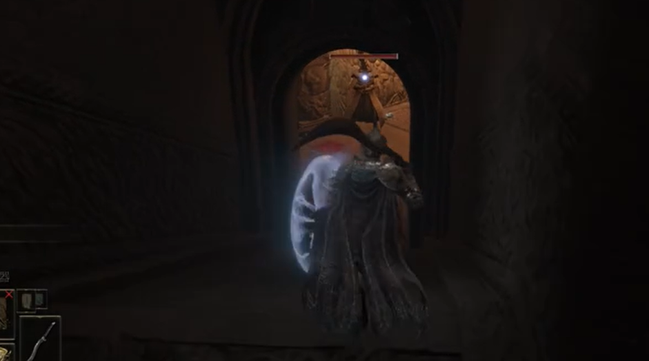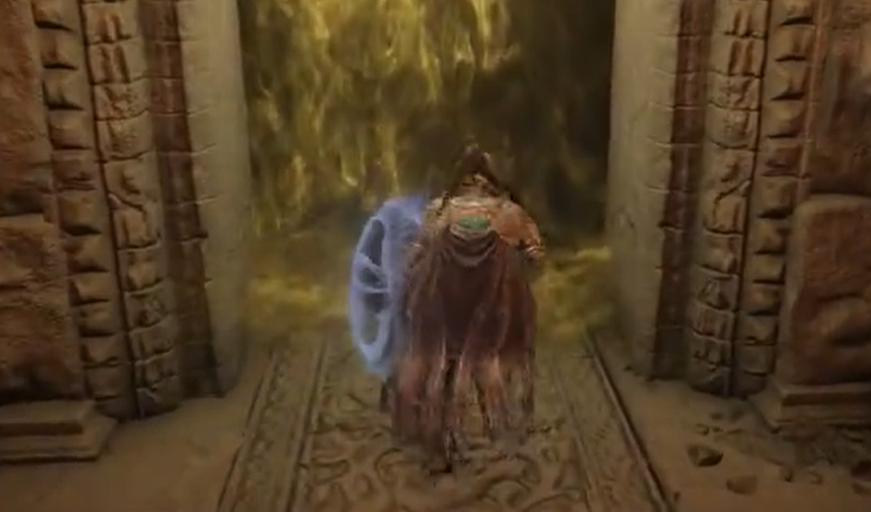 寧姆格福神授塔坐落在寧姆格福的北方傳送至【升降梯旁房間】篝火出門向紅標處跑酷順著路到達如圖位置並向紅標處進發並走到盡頭,橋上有3名巨人(可無視),而橋的盡頭有一個傳送門,進入傳送門就到達神授塔門口。寧姆格福神授塔可激活【葛瑞克的大盧恩】