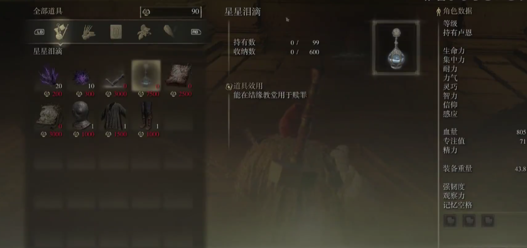 《艾爾登法環》星星淚滴在一個商人手裡進行購買,位置如下:
