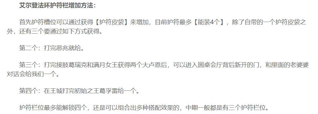 首頁 艾爾登法環 問答 艾爾登法環護符欄位怎麼增加? 2022-08-13 艾爾登法環中,可以裝配各類護符來附加各種額外的效果,隨著獲取護符數量的增多,也是有必要增加護符槽位。護符欄位最多能解鎖四個,還是可以組合出多種搭配效果的,中期一般都是有三個護符欄位。