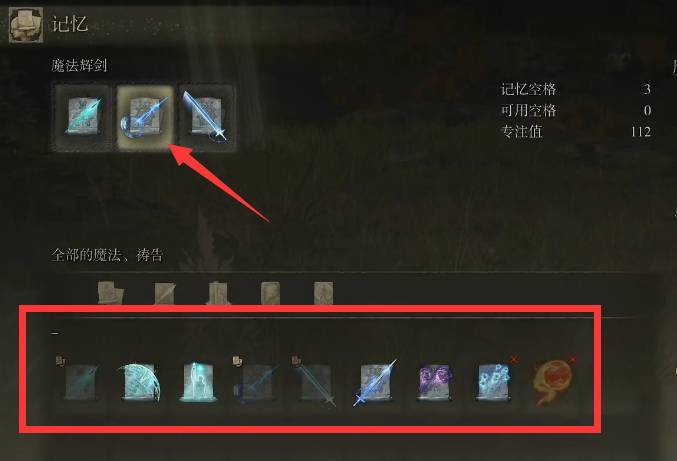 首頁 艾爾登法環 問答 艾爾登法環記憶空格怎麼換法術? 2022-08-13 1、首先進入任意賜福點休息進入引導之始頁面。2、隨後在休息時進入引導頁面,點擊進入「記憶」頁面。3、最後在「記憶」頁面,點擊下方物品欄的記憶,拖到3個記憶空格裡面,就可以利用記憶空格更換法術了。