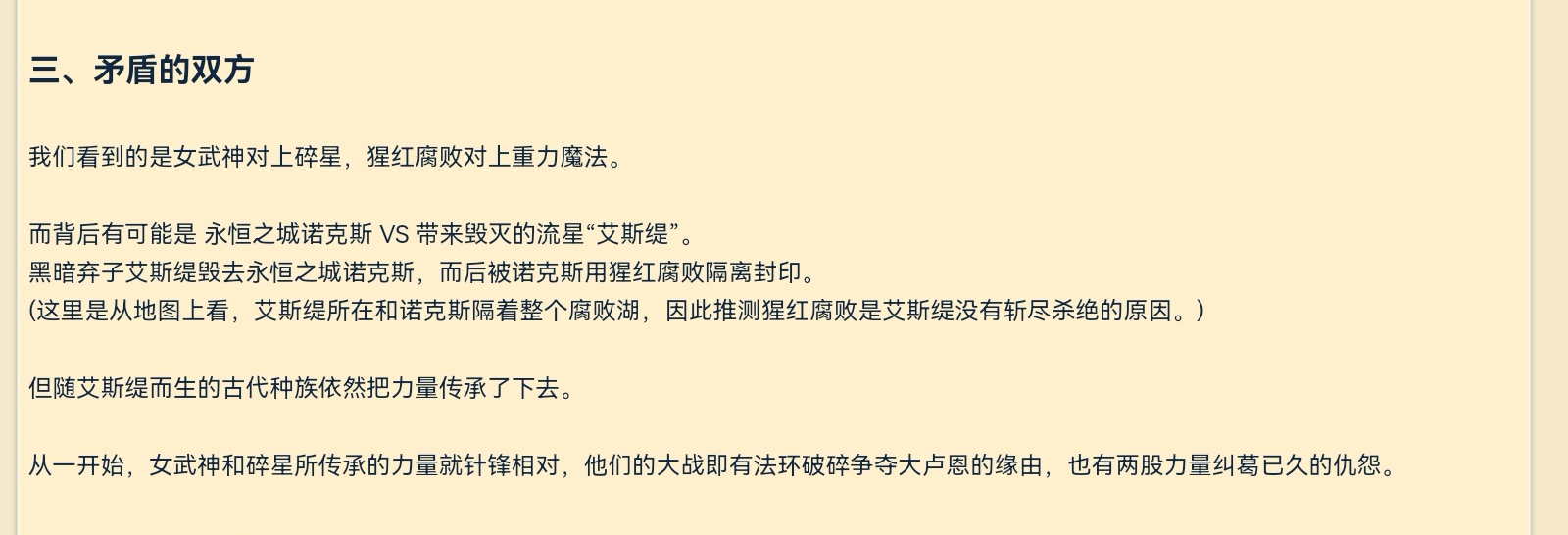 首頁 艾爾登法環 問答 艾爾登法環女武神和碎星為什麼要打? 2022-08-14 從一開始,女武神和碎星所傳承的力量就是針鋒相對的,他們的大戰既有法環破碎爭奪大盧恩的緣由也有兩股力量糾葛已久的愁怨。詳細背景故事見下圖。
