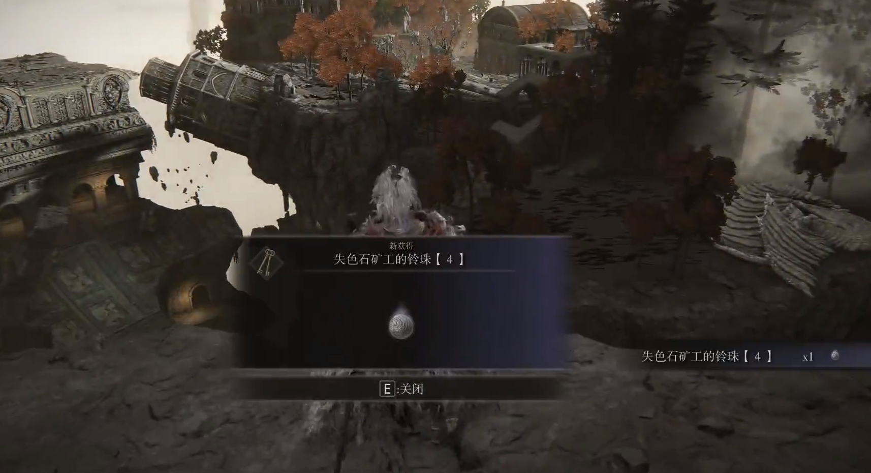 18、出去就可以看到賜福點了,龍捲旁露台,點亮賜福點,前面的屍體處就可以撿到失色石礦工的鈴珠【4】,