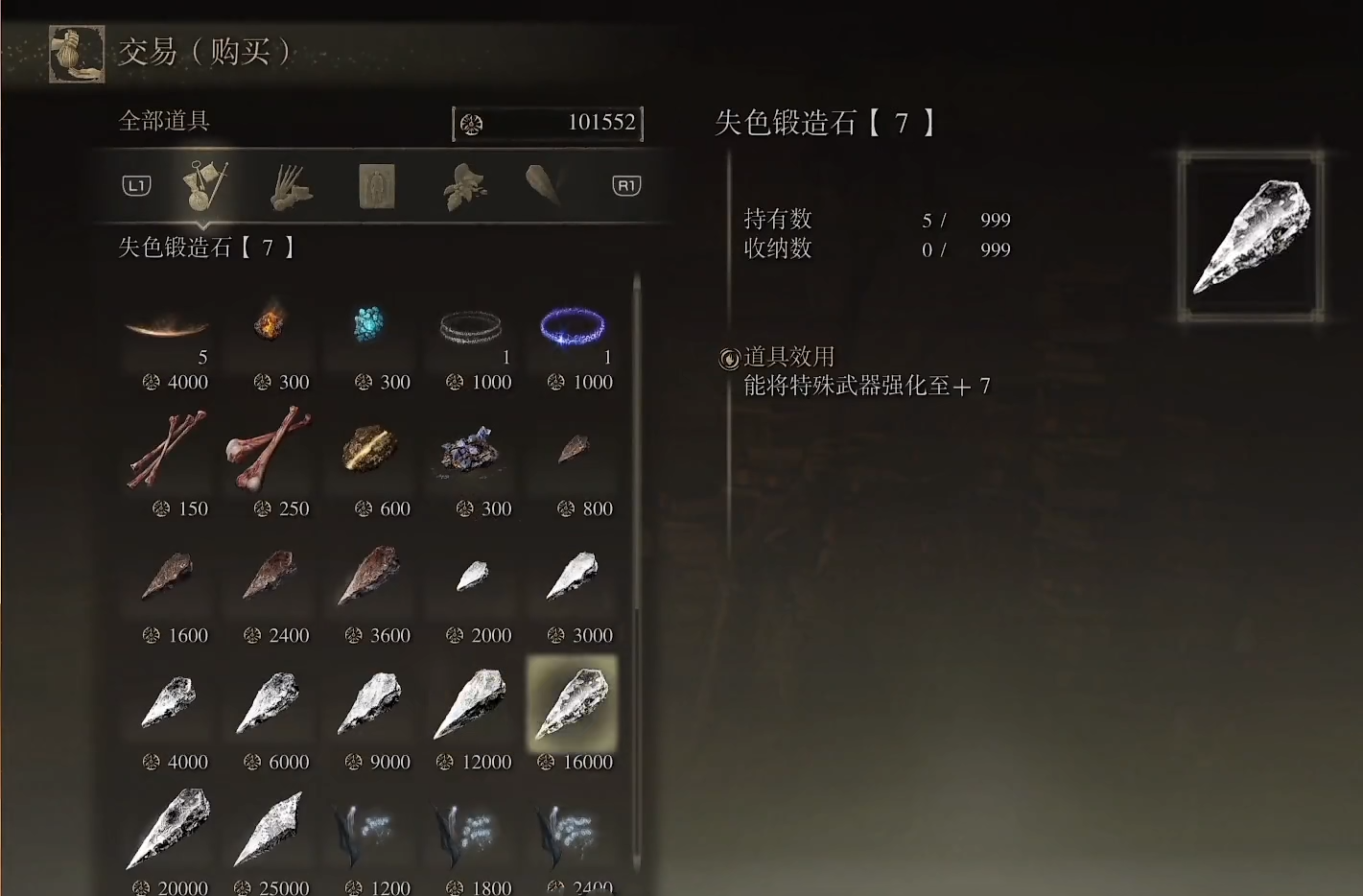 19、之後,我們回到大賜福,找到孿生老嫗,獻上失色石礦工的鈴珠【4】,就可以無限購買失色鍛造石【7】和失色鍛造石【8】。