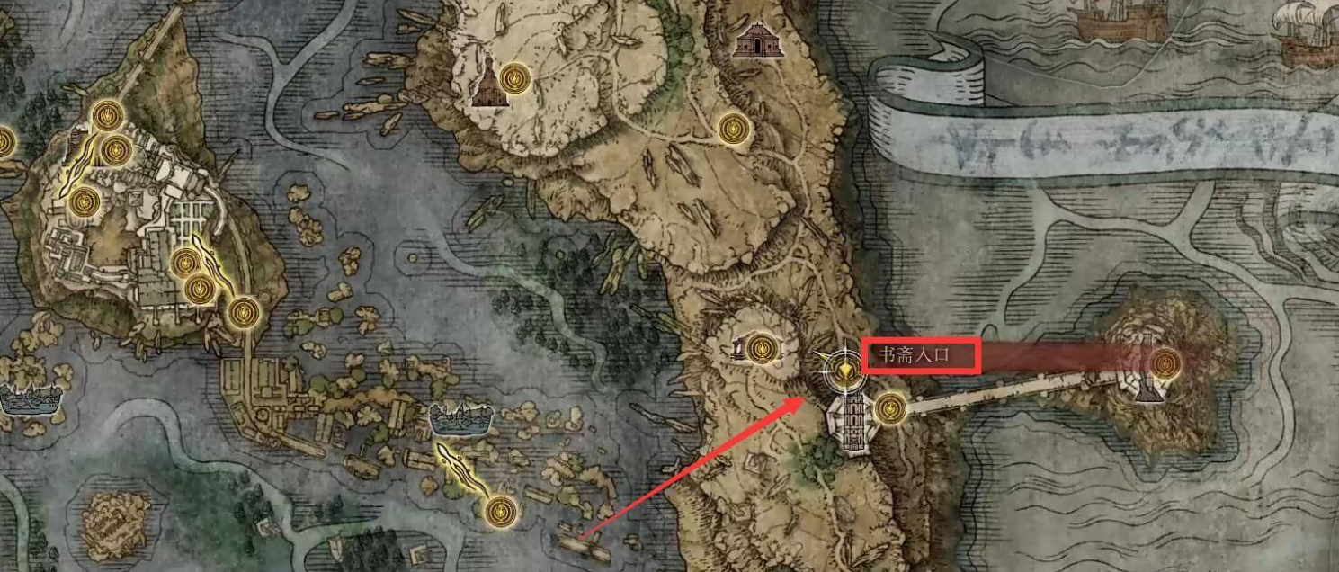1、打開遊戲地圖,預先到達書齋人口的位置。