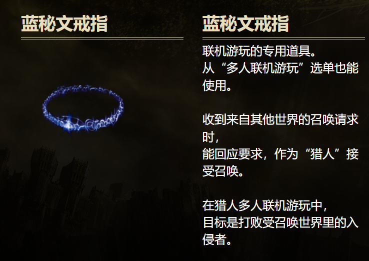 首頁 艾爾登法環 問答 艾爾登法環藍秘文戒指有用嗎? 2022-08-15 用處不大,聯機遊玩的專用道具,從「多人聯機遊玩」選單也能使用,在獵人多人聯機遊玩中,目標是打敗受召喚世界裡的入侵者,如下圖所示。以上就是有關艾爾登法環藍秘文戒指有用嗎的詳細解答,希望能夠幫助到你。
