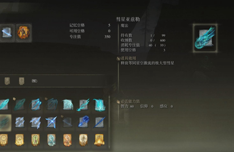 首頁 艾爾登法環 問答 艾爾登法環彗星亞茲勒為什麼裝備不上? 2022-08-15 艾爾登法環彗星亞茲勒裝備不上的原因就是它要佔據3格記憶空格,想要裝備上就需要清空記憶空格或者增加記憶空格之後在進行裝備。還有一種情況就是屬性不夠,這個技能需要智力達到60才可以裝備,智力不夠的玩家可以多搭配一些智力裝備。