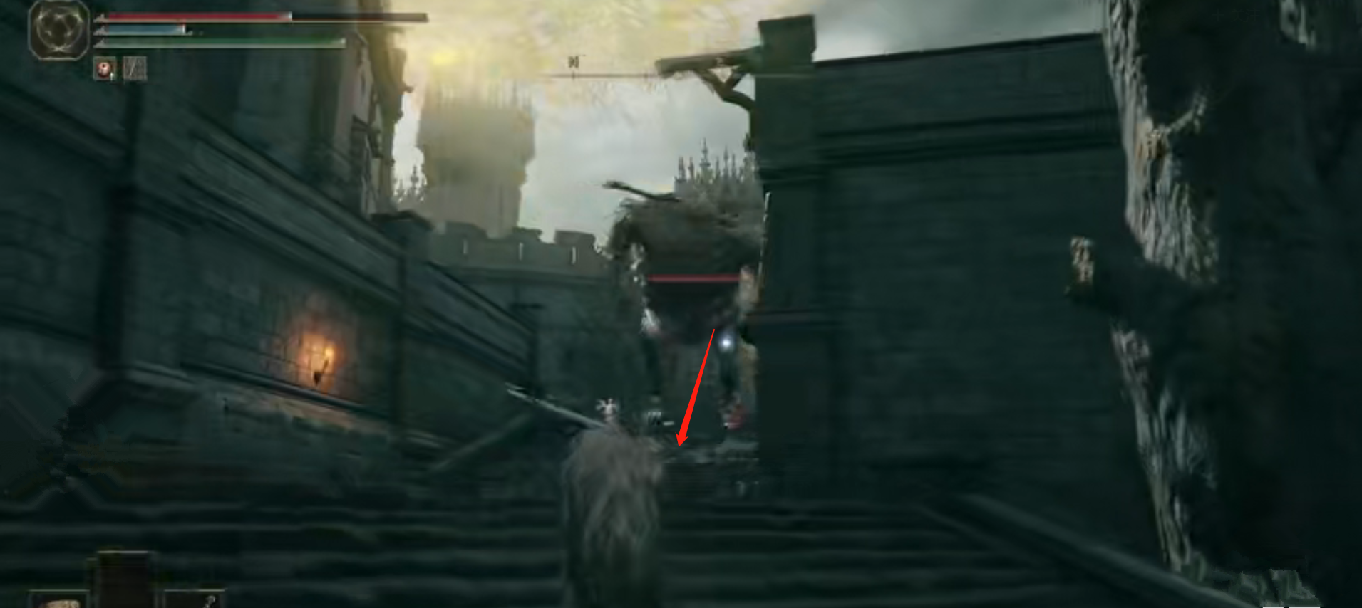 5.接著把巨人引到石像前,帶著巨人往石像方向走;