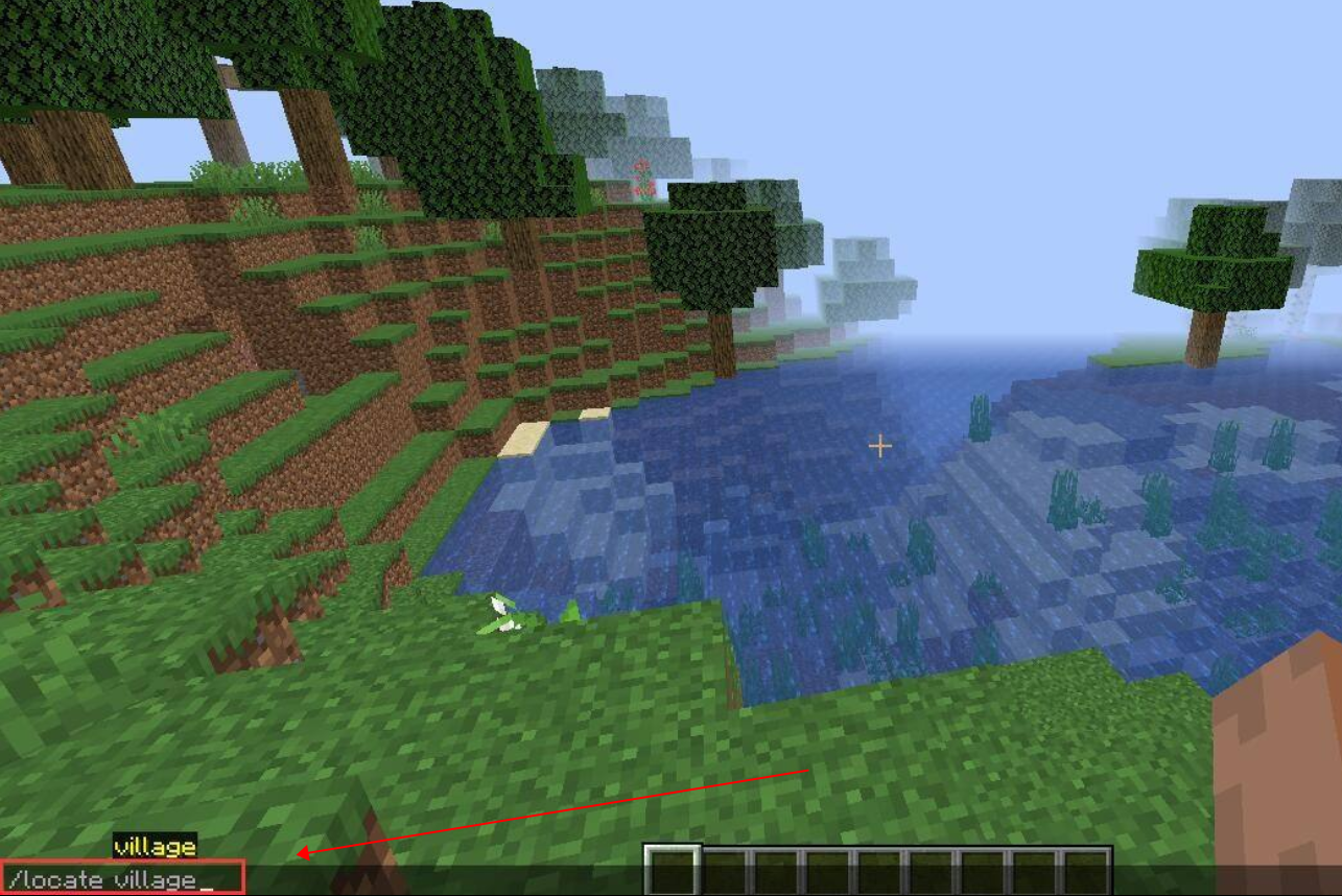 2、按下t鍵,輸入/locate village,並按下回車,如圖所示。