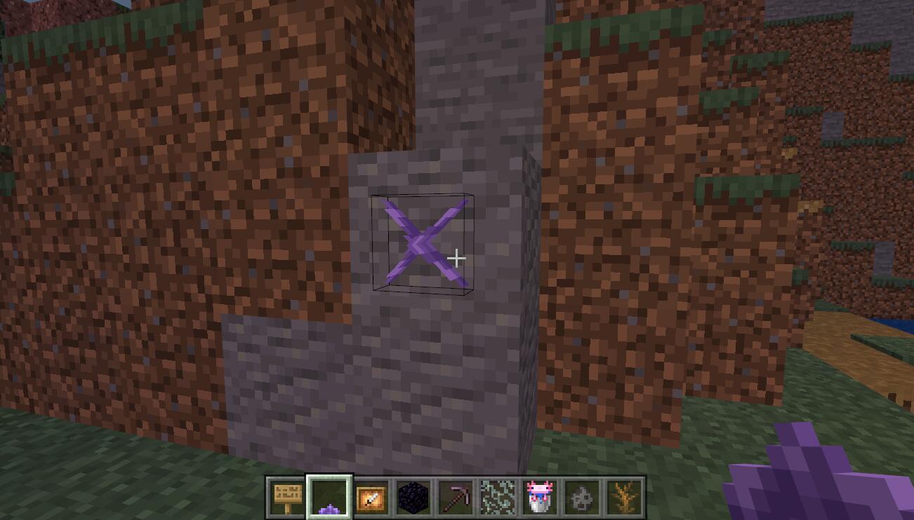 拿著紫水晶右鍵點擊石頭等物品即可把水晶種在上面。