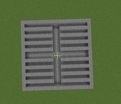 6.在橫向的盡頭空出一個2X2的區域,並且兩邊向外延伸10格圍起來,中間區域為8格的距離。