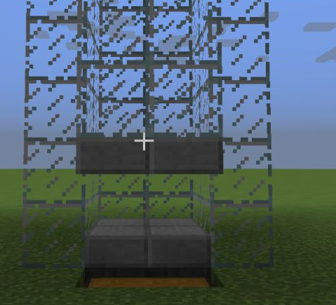 8.回到刷怪塔頂部,將縱向的兩邊也像橫向的那樣做一個長8格寬2格高2格的凹形區域。