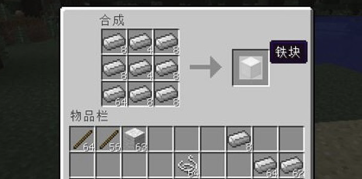 2、當玩家收集齊9個鐵錠後,將鐵錠放入工具箱進行合成就可以製作出鐵塊了。