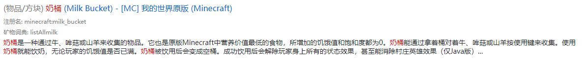 首頁 我的世界 問答 我的世界牛奶有什麼用? 2022-08-23 牛奶作用為清除身上的特殊效果和用來做蛋糕。1,首先我們可以搜索牛奶也就是奶桶的相關說明,點擊下方的奶桶說明。2,然後就可以發現,牛奶的作用為清除身上的特殊效果和做蛋糕。