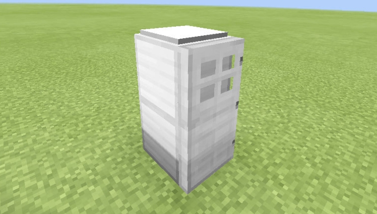 5、冰箱。超模擬的冰箱只需要磨製安山岩/鐵塊/灰色羊毛疊放,加上鐵門與壓力板。