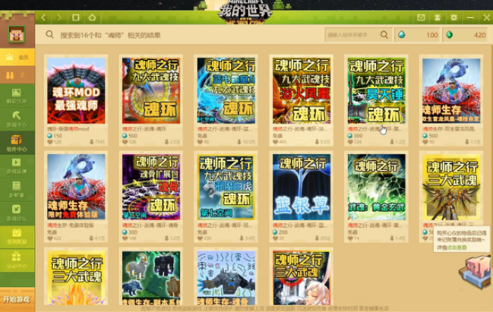 首頁 我的世界 問答 我的世界斗羅大陸模組怎麼玩? 2022-08-24 1、首先點擊我的世界組件中心,然後在上方的搜索欄里輸入魂師。2、點擊搜索後,如下圖所示,會出現很多斗羅大陸的模組,這時候我們挑選任意一個就可以進行遊玩了。