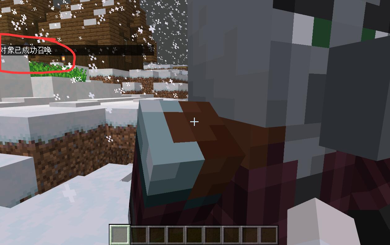 輸入指令/summon minecraft:pillager ~ ~1 ~就可以召喚出掠奪者了。