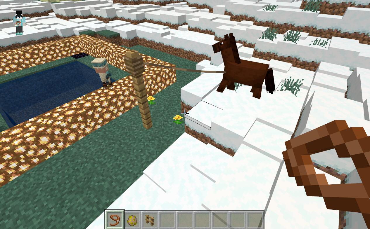 3,就可以把馬拴在木棍上,這樣馬就不會到處亂跑了,其他可以拴的生物也是一樣的。