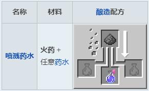 火藥 任意藥水可以釀造噴濺藥水,具體如下