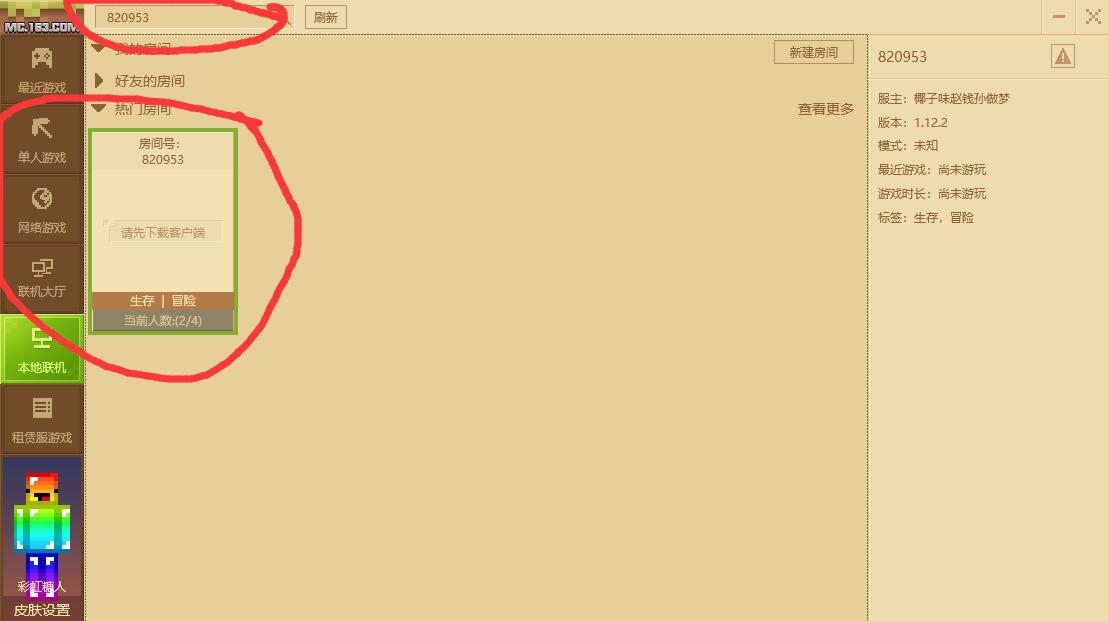 首頁 我的世界 問答 我的世界啟動器怎麼聯機? 2022-08-26 1,首先進入創建遊戲界面,點擊左側的本地聯機,再點擊右上角的新建房間。2,然後設置好房間參數後點擊下方的創建房間。3,最後好友搜索房間號進入即可。