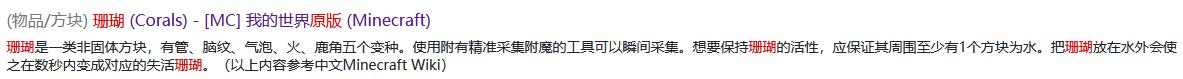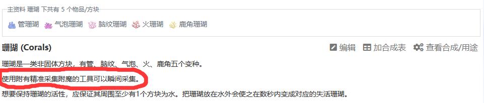 首頁 我的世界 問答 我的世界珊瑚怎麼挖活的? 2022-08-26 使用附有精準採集附魔的工具就可以挖活的珊瑚。1,首先我們搜索並進入我的世界珊瑚的相關說明。2,然後往下滑動就可以發現珊瑚怎麼挖活的了。