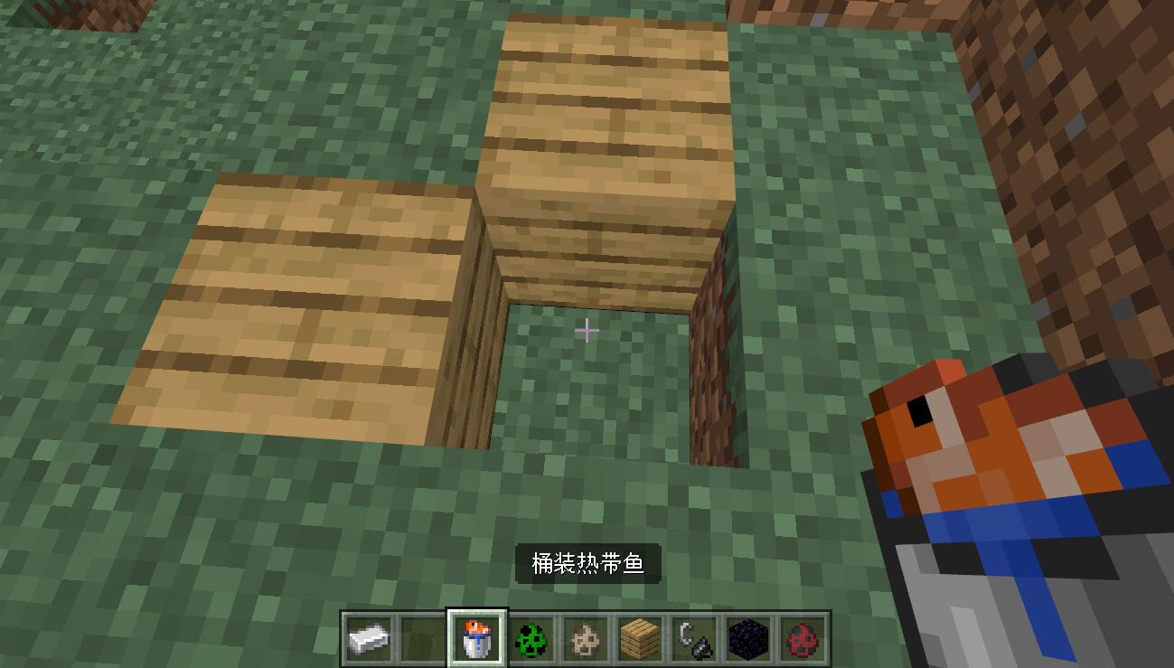 首先需要製作一個桶,然後拿著桶對著熱帶魚點擊滑鼠右鍵即可完成製作熱帶魚桶。