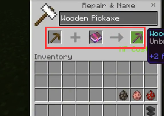 1、選擇一個鎬子和一本紫色的書,合成一把紫色的鎬子。