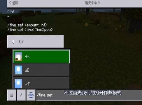 首頁 我的世界 問答 我的世界調時間代碼是什麼? 2022-08-27 1、首先我們的打開作弊模式,在輸入框裡面輸入/time set day。2、就可以調成白天模式,/time set night是調成黑夜模式的指令。3、如果輸入/time set 時間,就會跳轉到指定時間。