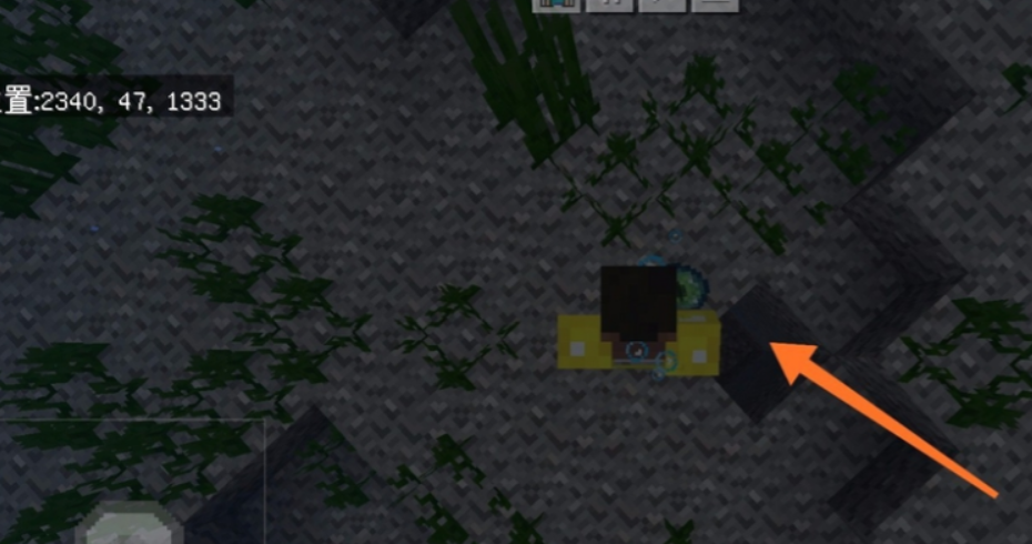 4、潛到指定位置後,不停的向末影之眼掉落位置的方塊向下挖,就會發現已經挖到了地牢的方塊。挖到地牢的方塊之後繼續向下滑,就可以走進地牢了。