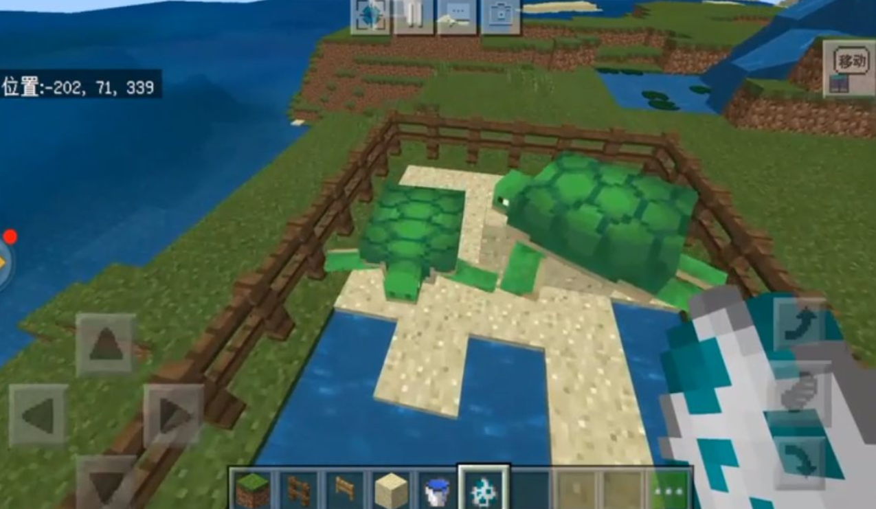 4.最後用木柵欄和沙子製作海龜園,用石磚鋪出一條小路即可。