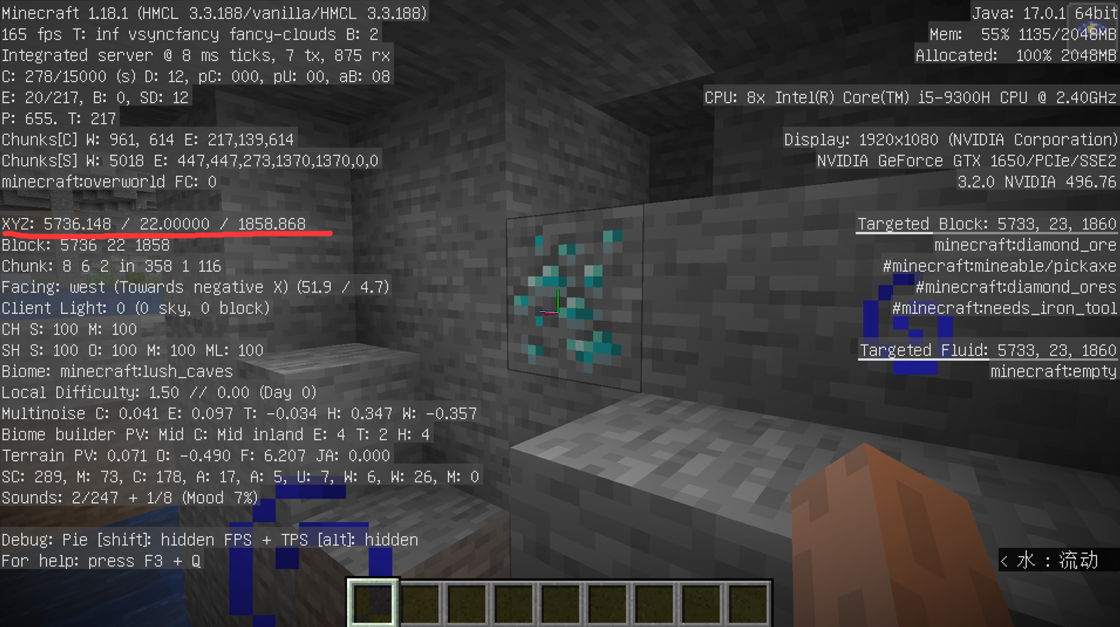 首頁 我的世界 問答 我的世界鑽石生成在第幾層? 2022-08-28 1、在遊戲我的世界中,玩家想要獲取鑽石就需要前往地下深處,一般鑽石生成在地圖高度為-64至16之間,越靠近基岩生成量就越高。2、可以看到玩家在高度為22的地下中,發現了一個鑽石礦。