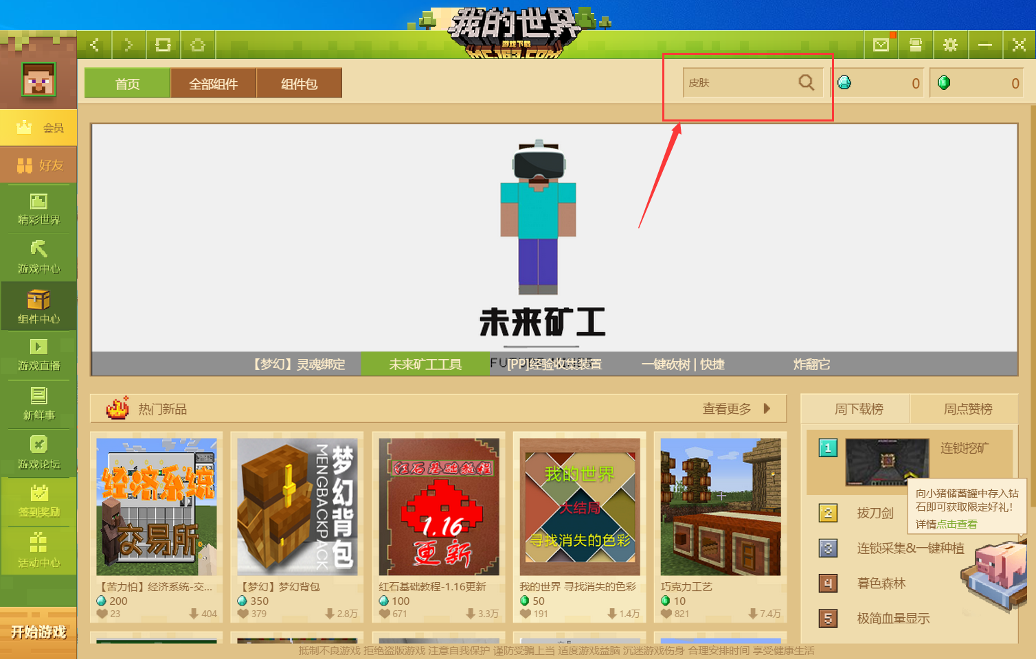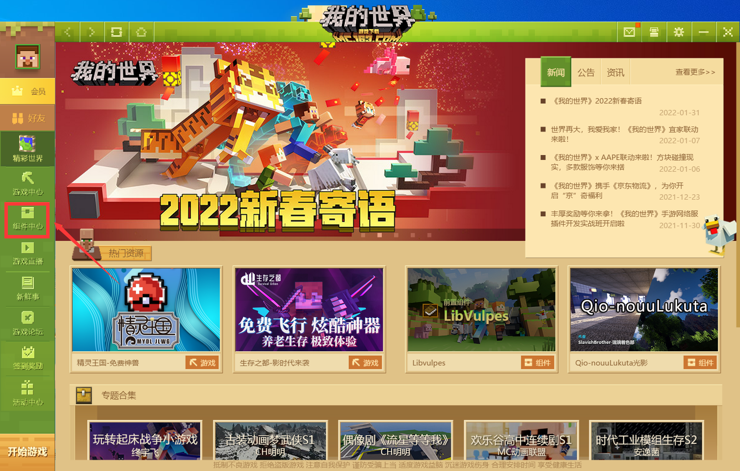 1.打開我的世界啟動器,點擊「組件中心」。
